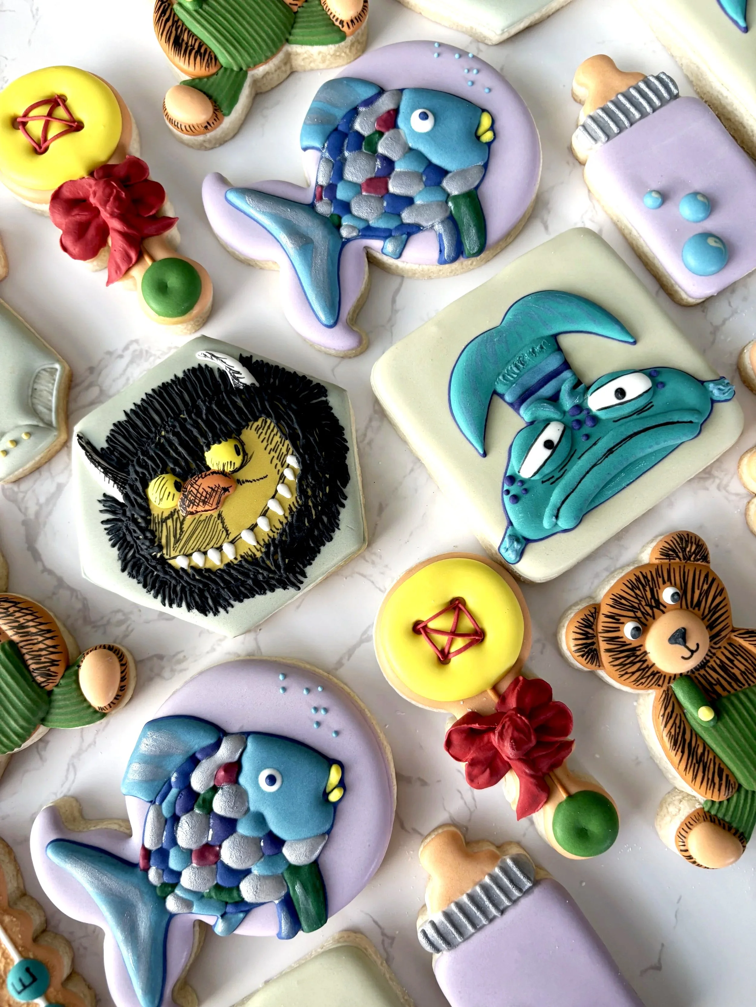 Elaborate Design Sets start at $75 and include 6+ custom colors, designed for very detailed designs and character cookies. These sets are perfect when you’re looking for extra detail, dimension, and wow-factor. Pricing may vary based on complexity.