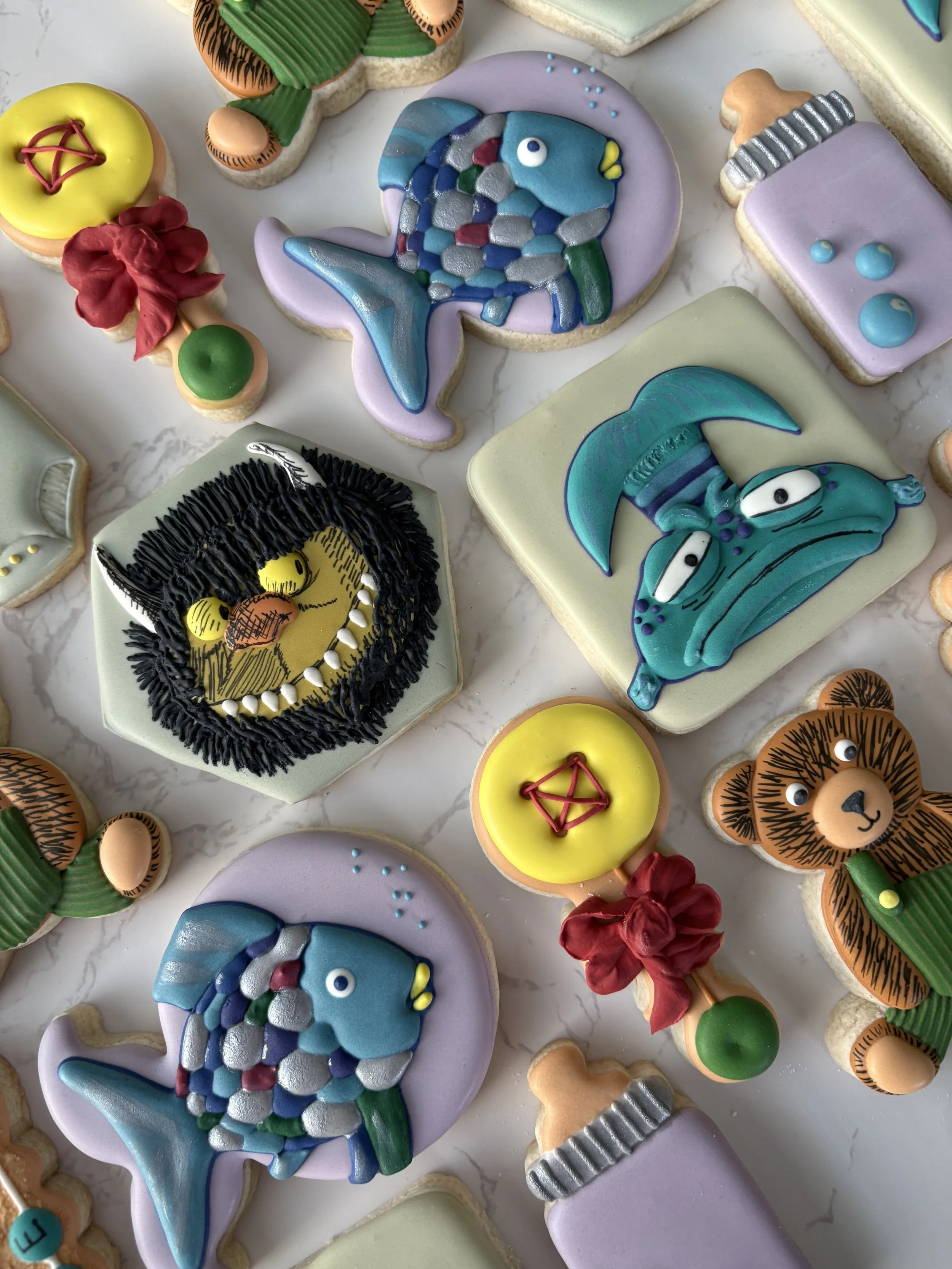 Elaborate Design Sets start at $75 and include 6+ custom colors, designed for very detailed designs and character cookies. These sets are perfect when you’re looking for extra detail, dimension, and wow-factor. Pricing may vary based on complexity.