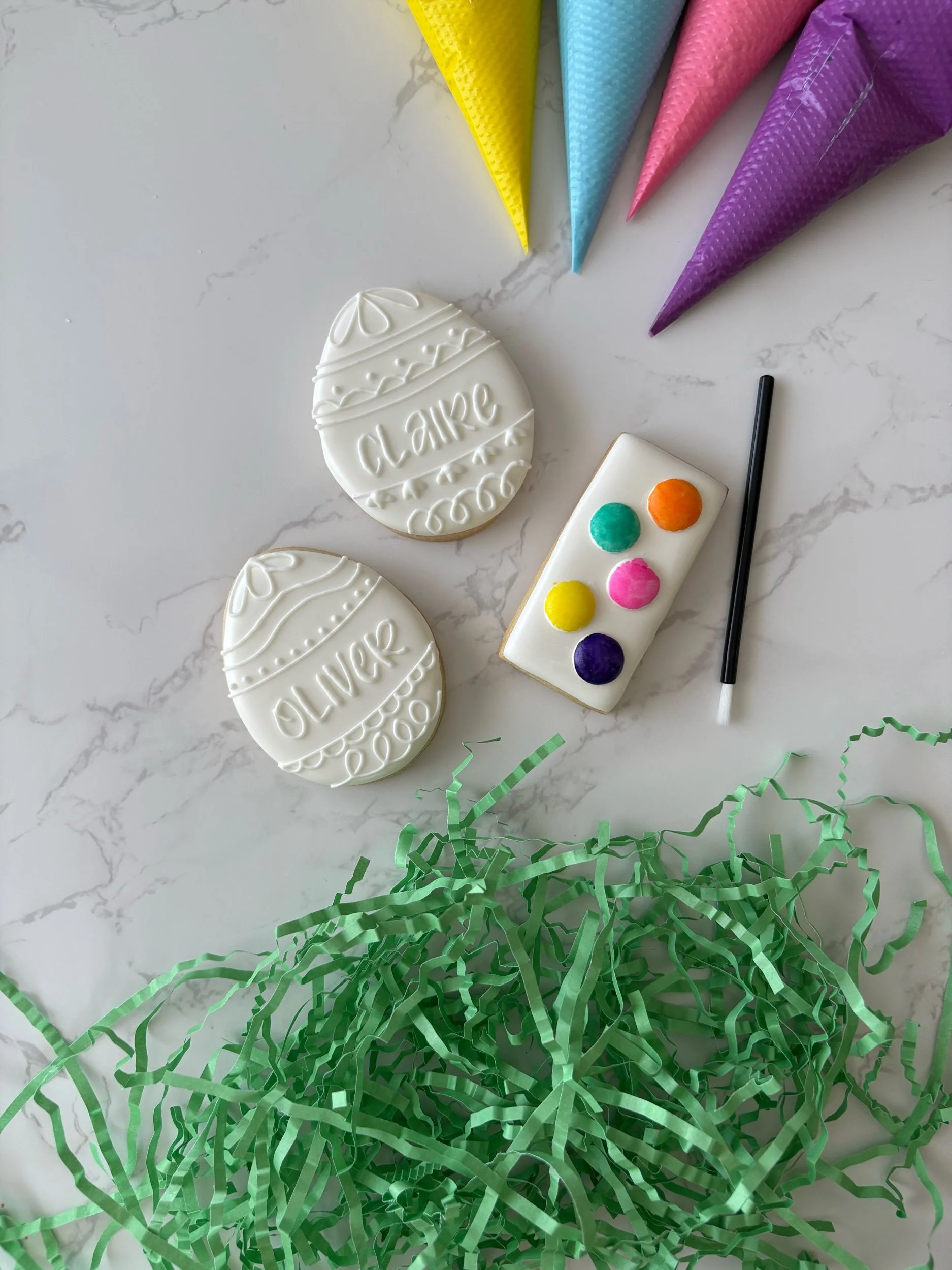 Your name, your creation. This personalized egg cookie comes as a 2-pack with an edible paint palette cookie, so they can decorate their own sweet masterpiece before devouring it. Brush included.